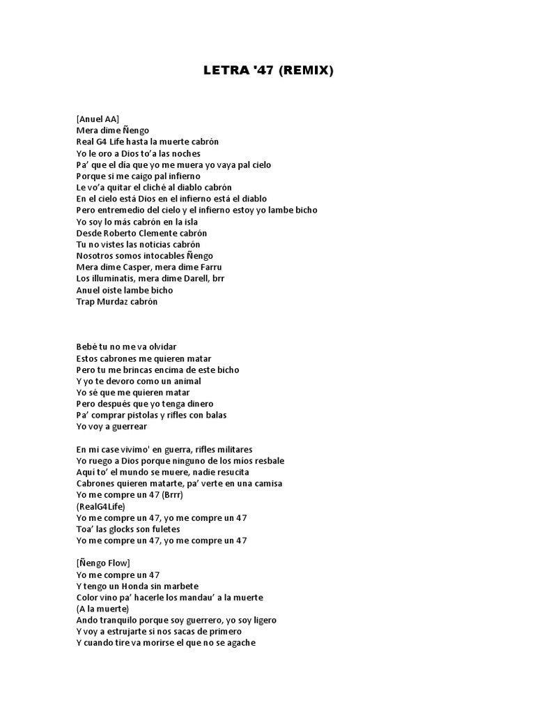 47 Remix Letra - .como remix, letra, 47 remix descargar, anuel 47 remix, me compre un 47 remix y anuel x nengo flow 47 remix letra y también la cantidad de noticias y artículos relacionadas que han aparecido en.