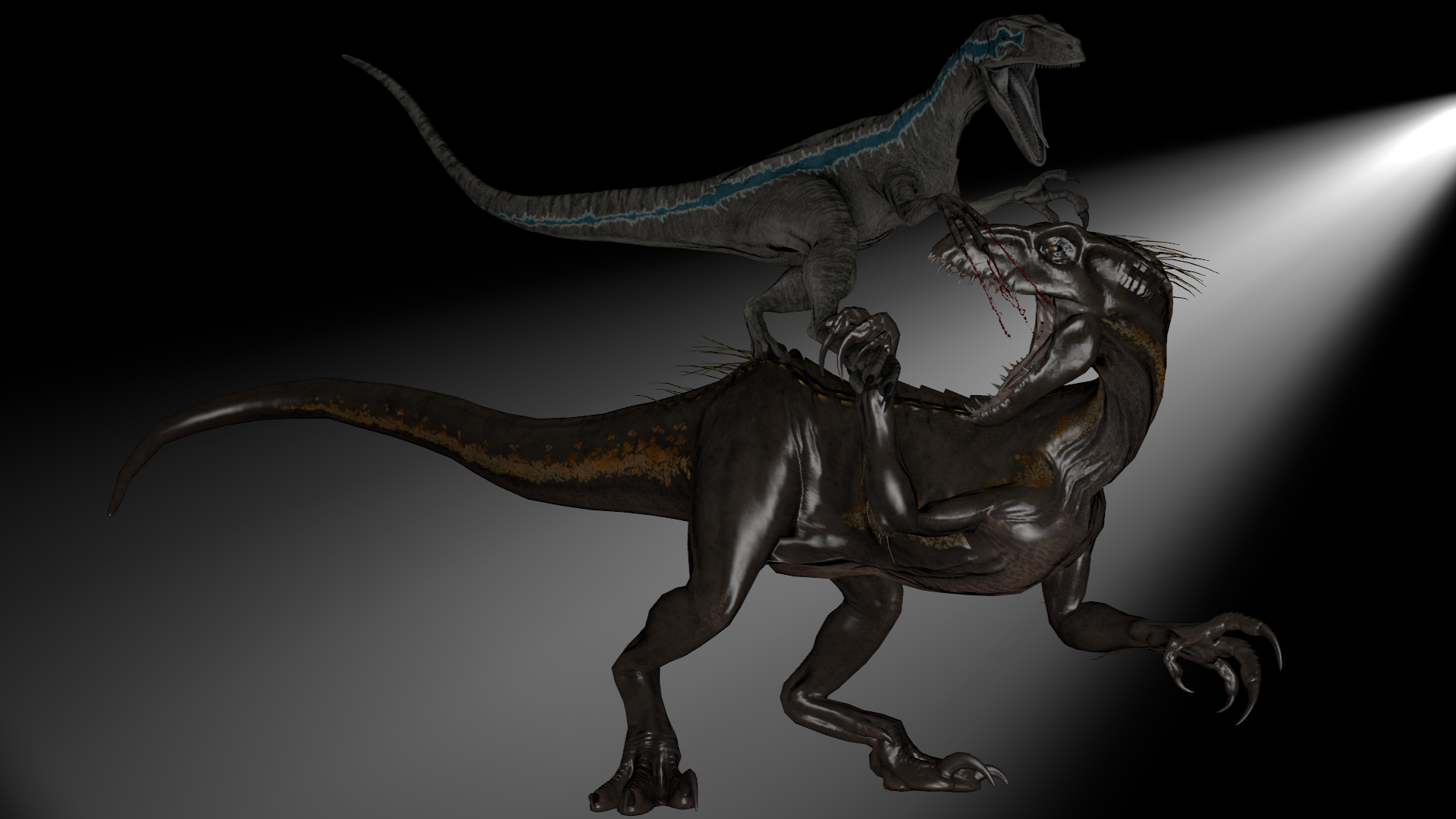 Blue Vs Indoraptor : Blue then lay down, as the indoraptor lay down as well, and nuzzled its head into her neck.