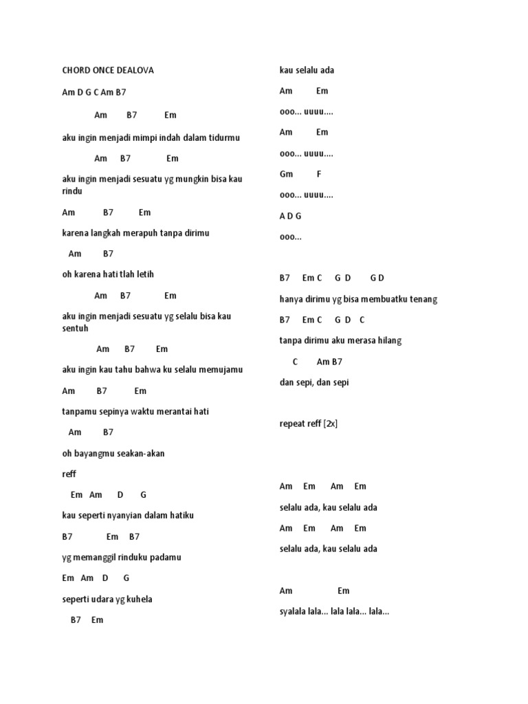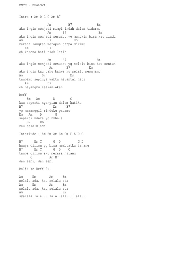 Chord Once Dealova Chordindonesia / Chord dan lirik lagu by chordzila.