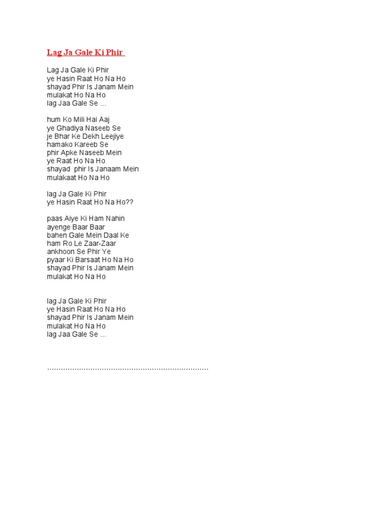 Lag Ja Gale Lyrics : Pehla pyar tu mera tu hi aakhri sanam teri chahat maan baith main hoon khuda.