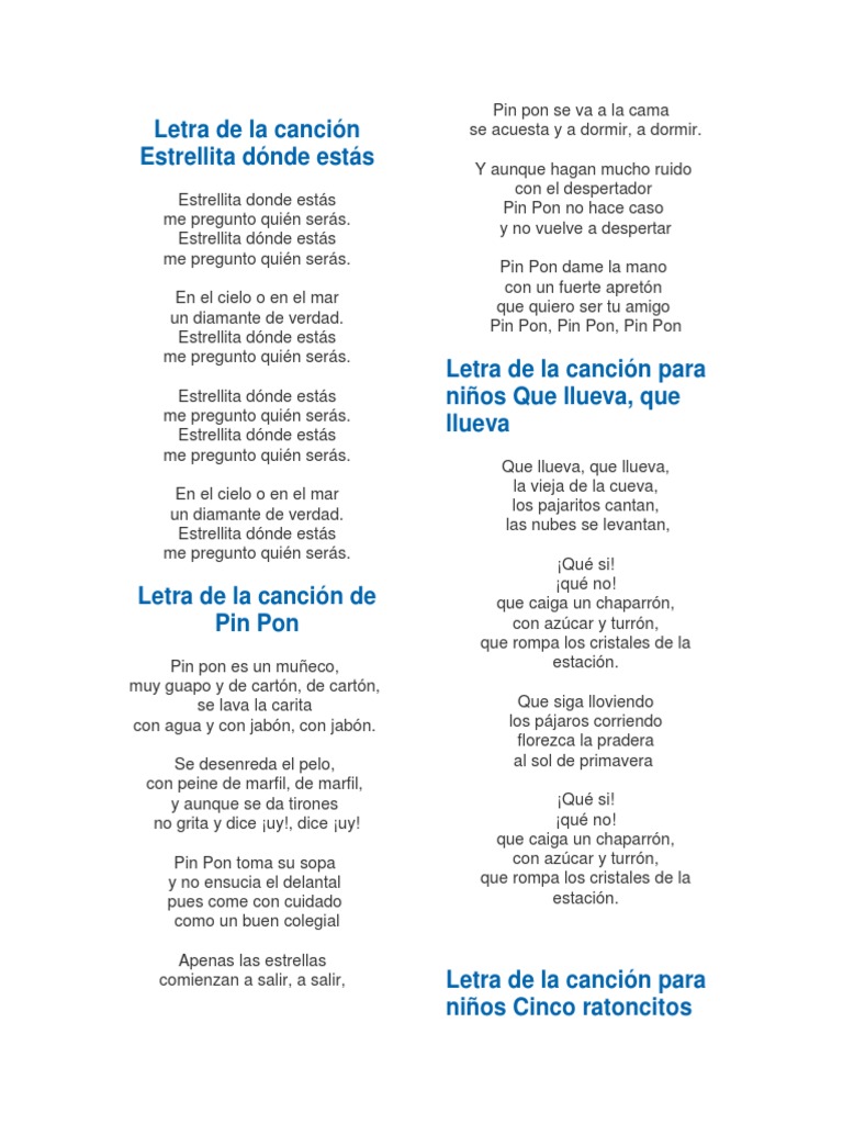Pin Pon Letras De Canciones Infantiles - Pin pon siempre se peina.