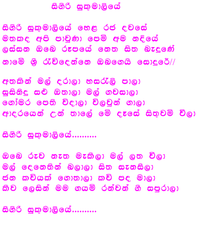 Sigiri Sukumaliye Lyrics - As the lk lyrics team, we believe content ownership and.